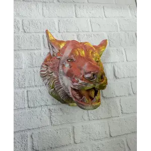 Gold Renk 3d Kurt Başı Duvar Dekoru