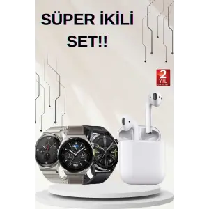 3 Kordonlu Dokunmatik Ekran Akıllı Saat ve 2.Nesil Kablosuz Bluetooth Kulaklık ANC/ENC