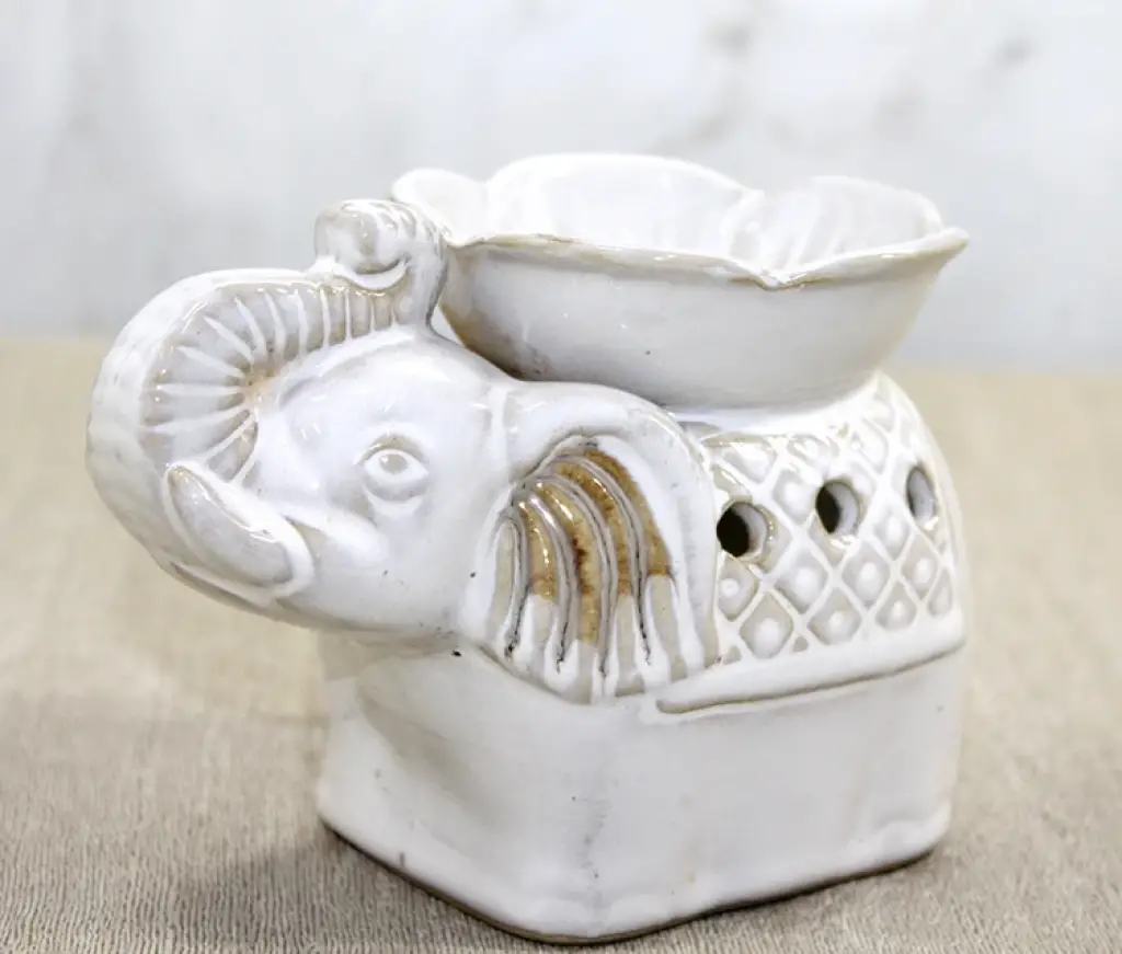 BEYAZ SERAMİK FİLLİ BUHURDANLIKÜrün ÖzellikleriBeyaz Seramik Filli Buhurdanlık, evinizde hem dekoratif hem de aromaterapik bir atmosfer oluşturan zarif bir tasarımdır. 14x10 cm ölçülerindeki bu özel buhurdanlık, detaylı fil figürü ile estetik bir görünüm sunarken seramik yapısı sayesinde ısıya dayanıklı ve uzun ömürlü kullanım sağlar. Üst haznesine ekleyeceğiniz uçucu yağlar, esanslar veya aromaterapi karışımları ile bulunduğunuz ortamda rahatlatıcı bir koku yayılmasına yardımcı olur. Mumla çalıştığı için kablosuz ve pratik kullanım sunar, ortam dekoruna şık bir dokunuş katar.Meditasyon, yoga, uyku öncesi rahatlama veya günlük atmosferi yumuşatma gibi birçok kullanım alanına sahiptir. Hem kendi kullanımlarınız için hem de sevdiklerinize hediye olarak tercih edebileceğiniz dekoratif ve fonksiyonel bir üründür.Paket İçeriği1 adet beyaz seramik filli buhurdanlık