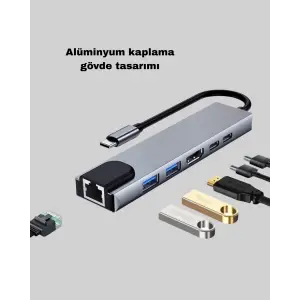 Type-C Çoklu Dönüştürücü – Alüminyum Gövde, Hızlı Veri Aktarımı ve Şarj Desteği