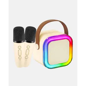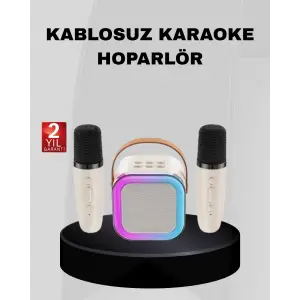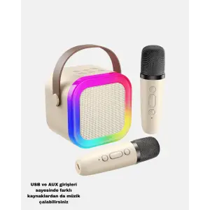 Karaoke Hoparlör Taşınabilir Çift Mikrofonlu ve LED Işıklı Bluetooth 5.0