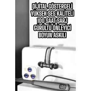 Boyun Askılı Bluetooth Kulaklık Uzun Şarj Süreli Dijital Göstergeli Kablolu