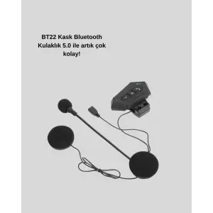 BT22 Kablosuz Kask Kulaklığı – Bluetooth 5.0, Intercom, Su Geçirmez ve Uzun Ömürlü Batarya