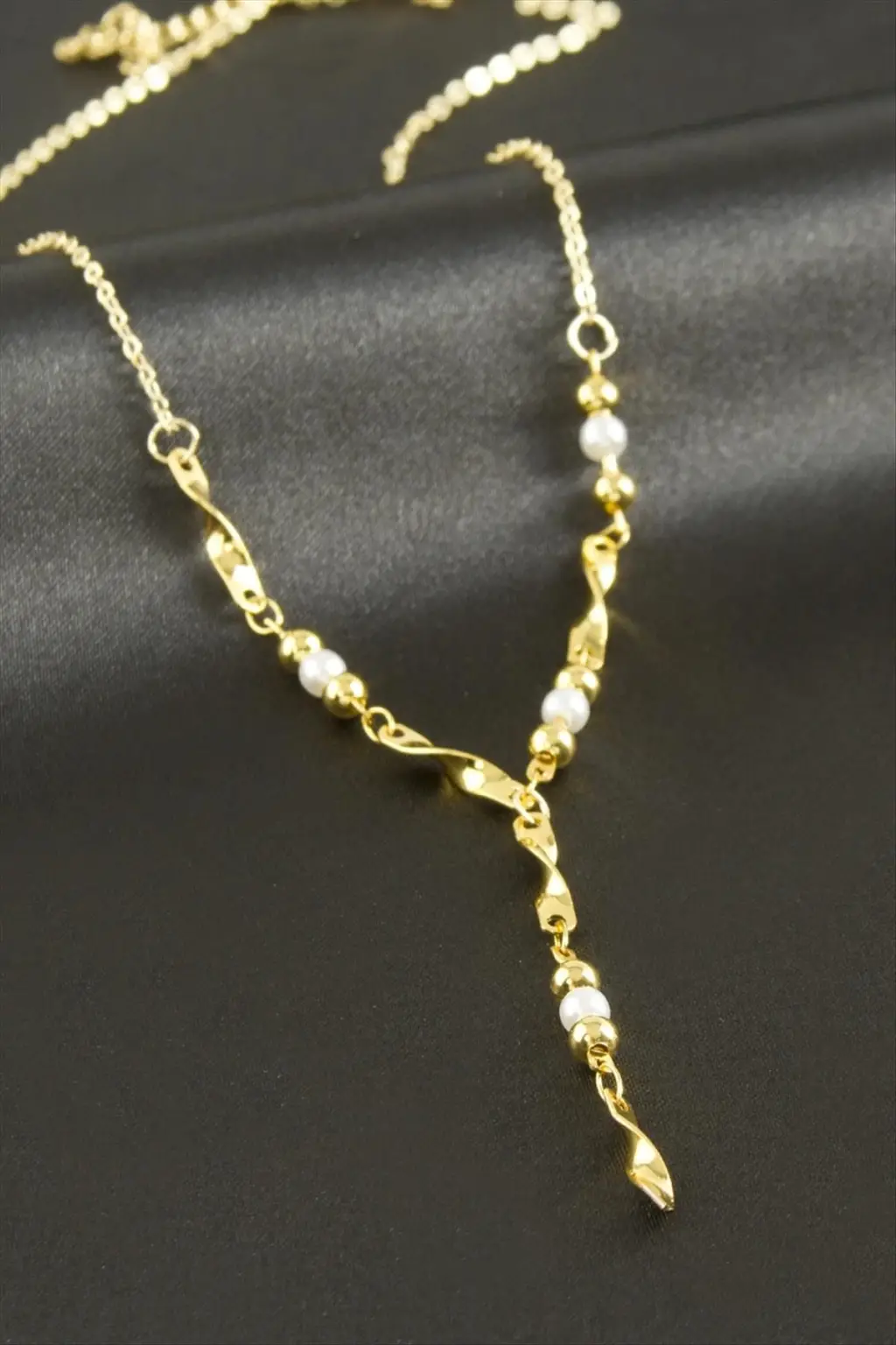 Kolye; Ürün malzemesi inci ve metaldir. 1 sınıf kaliteli malzemeden üretilmiştir. Ürün boyu 54 cmdir. Kartlıdır.