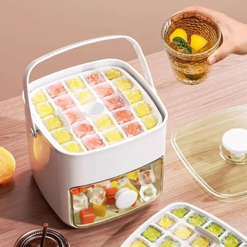 BUZ KALIP VE SAKLAMA KUTUSUÜrün ÖzellikleriBuz kalıp ve saklama kutusu, mutfakta hem düzeni sağlayan hem de pratik kullanım sunan bir üründür. İçerisinde yer alan 2 adet silikon buz kalıbı toplamda 24 adet buz küpü yapma imkânı sunar. %100 BPA içermeyen malzemesiyle güvenli kullanım sağlar ve toksik madde içermez. Kapaklı yapısı sayesinde buzdolabında hijyenik muhafaza sağlarken, özel tuş sistemi sayesinde buz küplerini kolayca çıkarma imkânı sunar. Bu sistem sayesinde buzlar dökülmez, kirli ellere temas etmeden temiz ve düzenli kullanım elde edilir. 14,5x15x16 cm ölçülerindeki bu şık ve kompakt ürün, mutfakta yer kaplamaz ve tezgâhları temiz tutmaya yardımcı olur.Paket İçeriği1 Adet Buz Kalıp Ve Saklama Kutusu