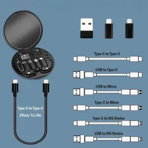 Yumurcak Shop® 60w Destekli Kablo Kutusu Seyahat Kablo Seti 5'i 1 arada USB Type-C Şarj Kablosu Seti