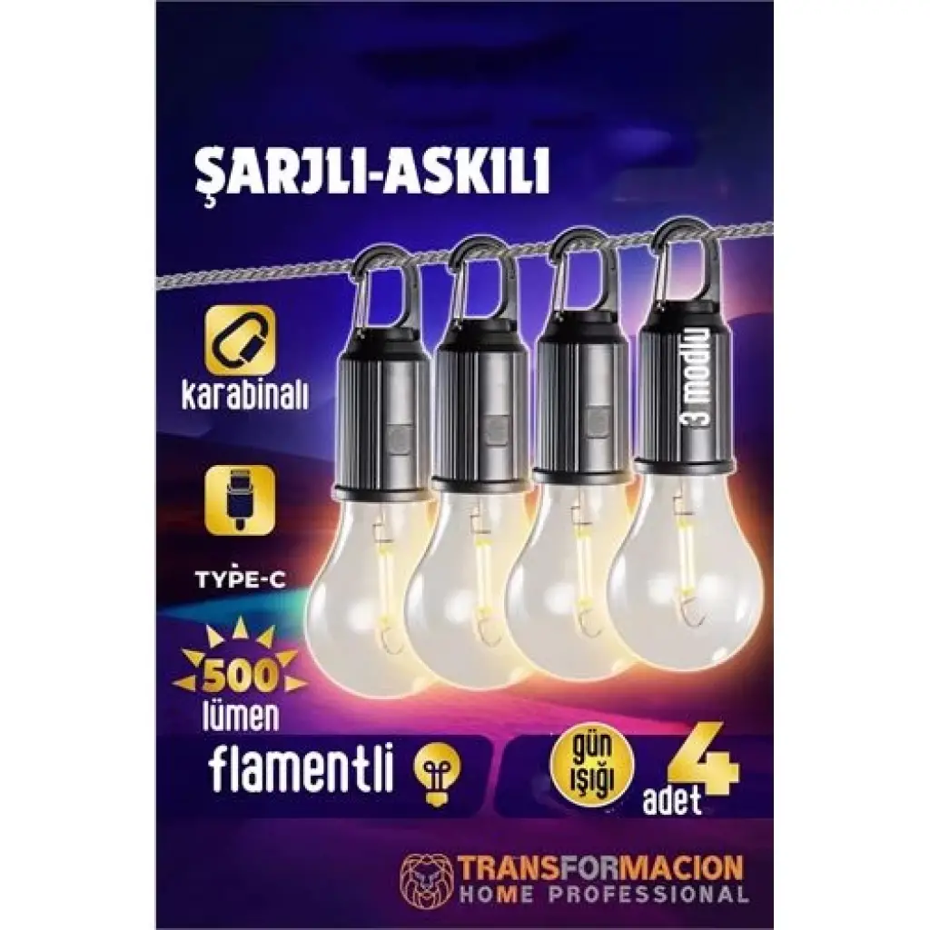 - Taşınabilir Kamp Lambası – 3 Işık Seviyesi, Flamentli LED
