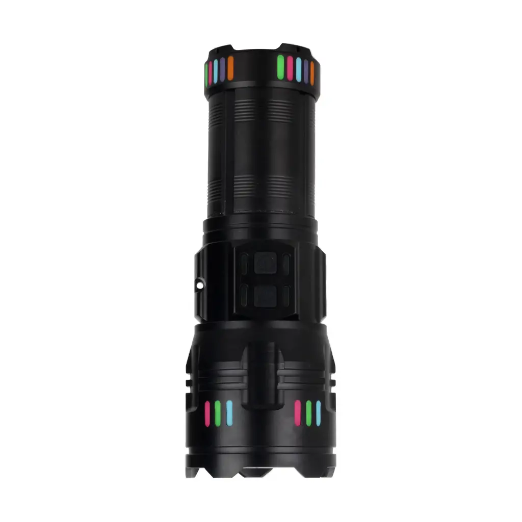 Lazer Led Tuşu: Üstte yer alan bu tuş, feneri Süper Parlak Fener modunda açar ve böylece çok güçlü bir ışık elde edilir. Dimmer özelliği sayesinde, tuşa basılı tutarak ışık parlaklığını ayarlayabilirsiniz.