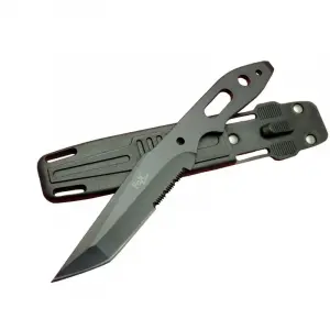 Fox A13 Siyah, Testereli Outdoor Kamp Bıçak 22 cm - Komple Metal, Kılıflı