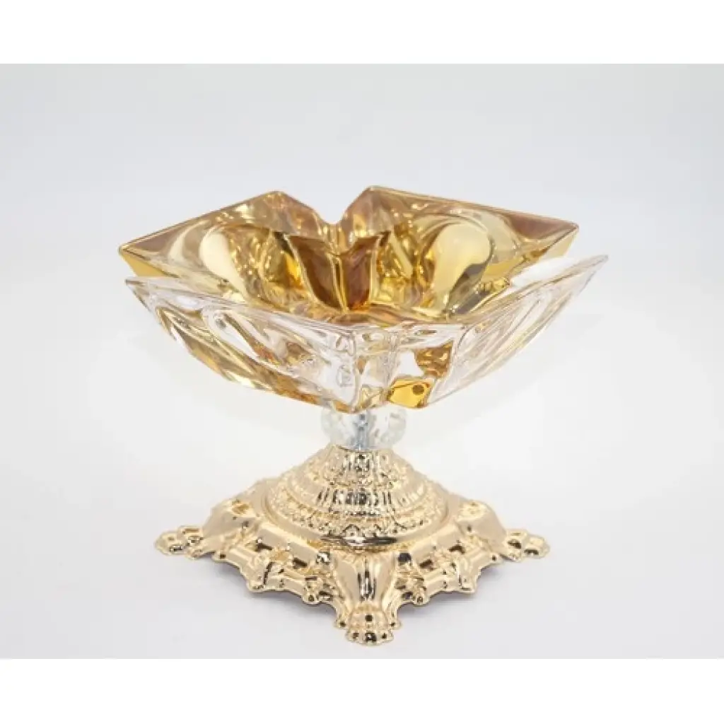 CAM KÜLLÜK MODEL 4Ürün ÖzellikleriCam Küllük Model 4, şık ve dekoratif tasarımı ile hem günlük kullanım hem de özel mekanlar için idealdir. Kristal cam ve altın renkli detaylara sahip metal ayaklarıyla lüks bir görünüm sunar. Yüksek kaliteli cam malzemesi sayesinde uzun ömürlü ve dayanıklıdır. Modern ve zarif tasarımıyla ev, ofis, restoran veya otel gibi mekanlarda kullanıma uygundur. Kolay temizlenebilir yüzeyi ile hijyenik bir kullanım sağlar.Paket İçeriği1 Adet Cam Küllük Model 4