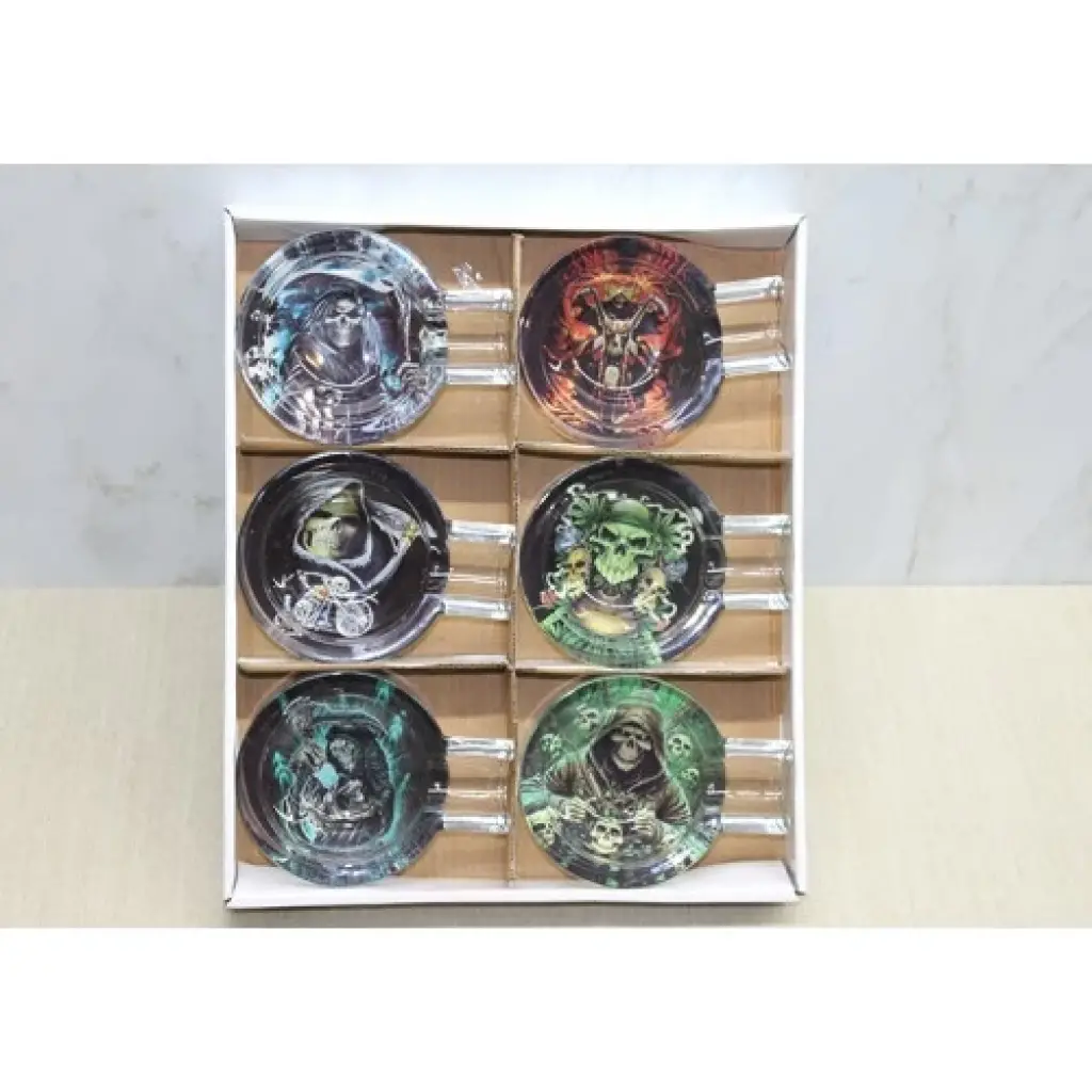 CAM PURO KÜLLÜK MODEL 4Ürün ÖzellikleriCam Puro Küllük Model 4, yuvarlak şekli ve hayalet iskelet temalı tasarımıyla dikkat çeker. Yüksek kaliteli cam malzemeden üretilmiş olan bu küllük, dayanıklı yapısı ile uzun süre kullanım sağlar. Hayalet iskelet motifleriyle süslenmiş, dekoratif ve şık bir tasarıma sahiptir. Hem estetik hem de fonksiyonel olan bu obje, puro severler için vazgeçilmez bir aksesuar olarak öne çıkar.Paket İçeriği1 Adet Cam Puro Küllük Model 4