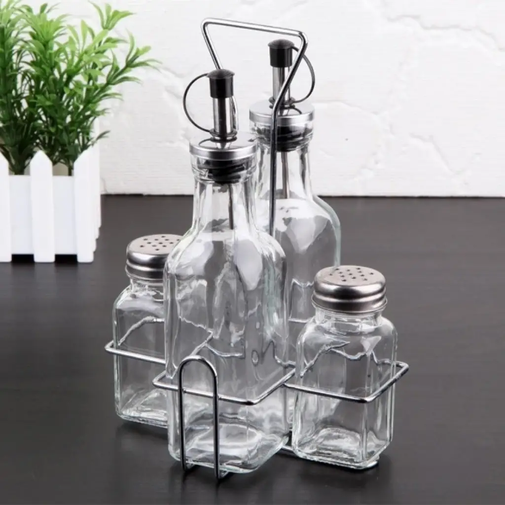 CAM YAĞLIK VE SİRKELİK SETİÜrün ÖzellikleriŞık ve kullanışlı tasarımıyla mutfakların vazgeçilmezi olan Cam Yağlık ve Sirkelik Seti, sofralarda ve yemek hazırlıklarında düzeni sağlamak için mükemmel bir seçimdir. Set içerisinde cam malzemeden üretilmiş yağlık ve sirkelik şişeleri yer alır. Paslanmaz metal kapakları sayesinde uzun süreli kullanım sunar ve dökülmeyi önleyen akıtmaz ağız yapısı sayesinde pratik bir kullanım sağlar.Cam şişeler, hem yağ hem de sirke için ideal kapasiteye sahiptir ve camın şeffaf yapısı sayesinde içerisindeki ürün miktarını kolayca görebilirsiniz. Sağlam metal taşıma standı, ürünlerin düzenli durmasını ve kolay taşınmasını sağlar. Şık tasarımı sayesinde mutfak tezgahlarında veya sofralarda dekoratif bir görünüm sunar.Bu set, hem ev kullanımı hem de restoran, kafe gibi profesyonel mutfaklar için idealdir. Temizlemesi kolay, hijyenik ve uzun ömürlü yapısıyla kullanıcıya konfor sağlar.Paket İçeriği1 adet Cam Yağlık Ve Sirkelik Seti