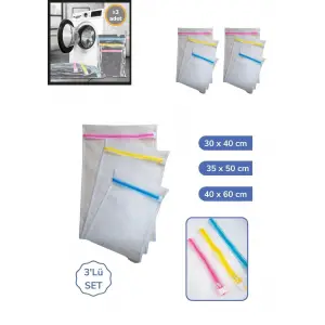 3'lü Çamaşır Yıkama Filesi Set Renkli Fermuarlı Pratik Çamaşır Yıkama Filesi Seti 3 Boy (336336)