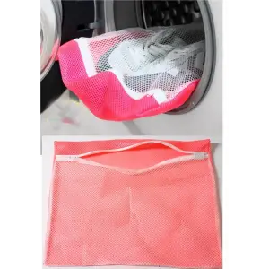 Pembe Fermuarlı - Hassas Çamaşır Terlik Ayakkabı Yıkama Filesi Büyük Boy (336336)