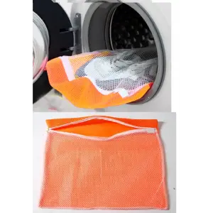 Turuncu - Fermuarlı - Hassas Çamaşır Terlik Ayakkabı Yıkama Filesi Büyük Boy (336336)