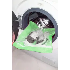 Yeşil - Fermuarlı - Hassas Çamaşır Terlik Ayakkabı Yıkama Filesi Büyük Boy (336336)