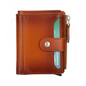 Deri Cüzdan Ve Kartlık, Mekanizmalı, 10 Adet Kart Bölmeli, Antik Kahve
