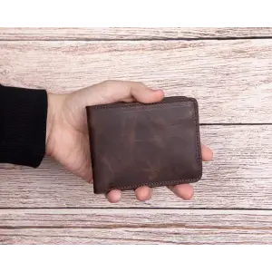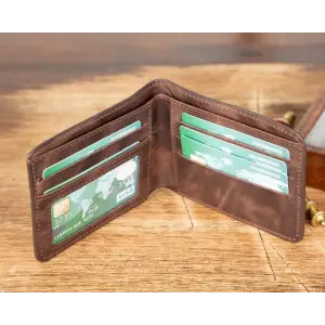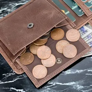 Deri Cüzdan, 6 Kart ve Bozuk Para Bölmeli, Karamel Kahve Deri