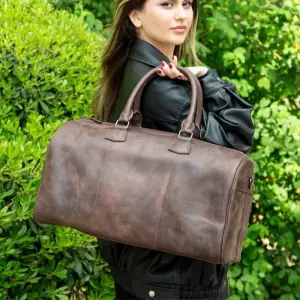 Dolly Gerçek Deri Seyahat Çantası Antik Koyu Kahve