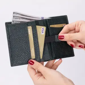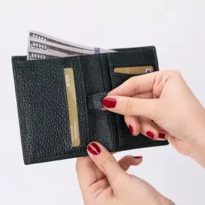 Purahide Deri Cüzdan, 7 Adet Kart Bölmesi, Dokulu Siyah