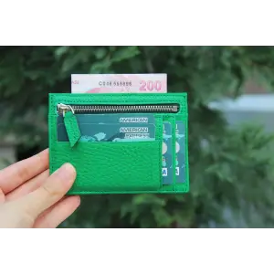 Zip Deri Fermuarlı Kartlık ZPCH ERC4 Yeşil