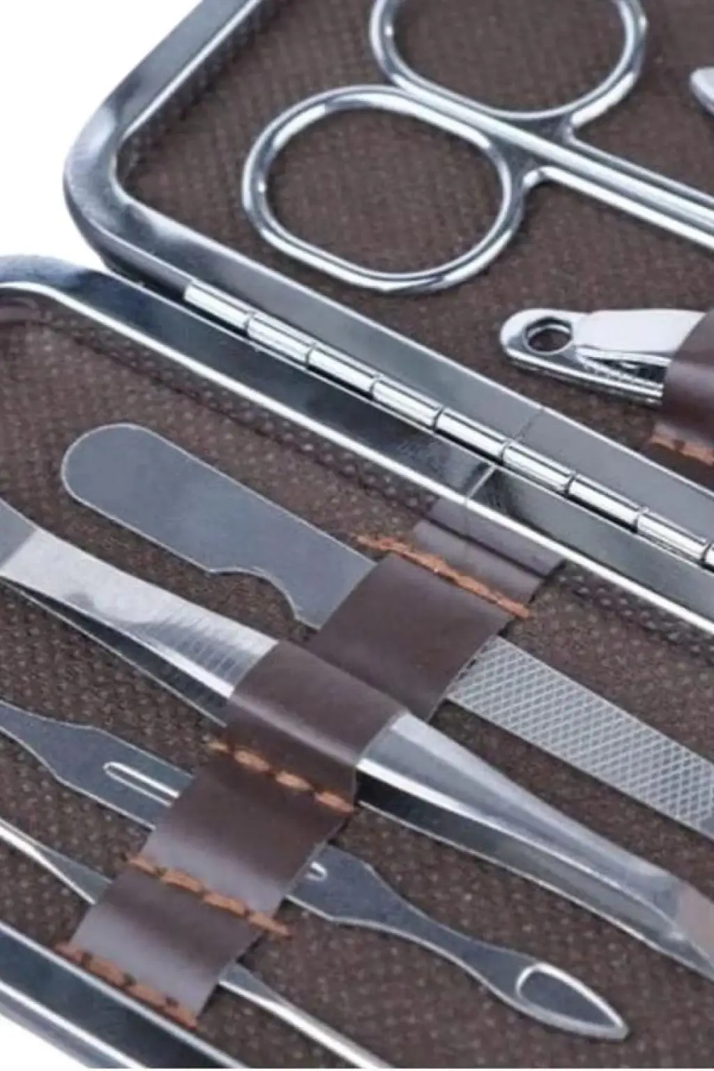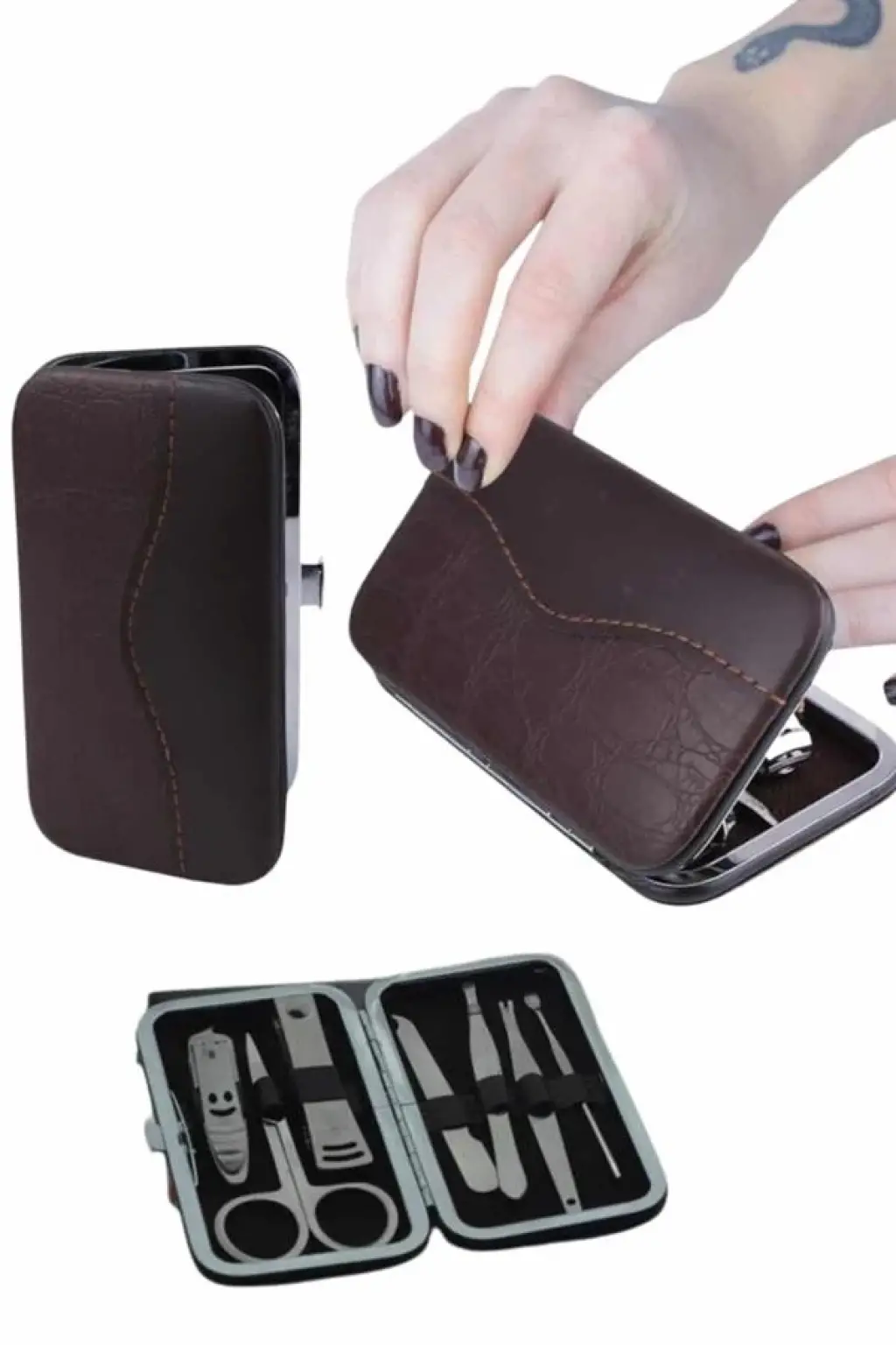 7 Parça Paslanmaz Çelik Manikür ve Pedikür Seti | Şıklığıyla Göz Dolduran Kişisel Bakım ÇözümüKişisel bakımınıza özen gösteriyor ve her zaman bakımlı eller ile ayaklara sahip olmak istiyorsanız, bu 7 parçadan oluşan manikür ve pedikür seti tam size göre. Günlük kullanım için özel olarak tasarlanan bu set, fonksiyonellik ile estetiği bir araya getirerek bakım rutinlerinizi hem daha keyifli hem de daha pratik hale getiriyor. Paslanmaz çelikten üretilmiş her bir parça, uzun ömürlü kullanım ve hijyenik temizlik avantajı sunarken, dayanıklılığı ile dikkat çeker.Setin içerisinde tırnak makası, makas, törpü, cımbız, tırnak itici ve diğer tamamlayıcı aksesuarlar yer alır. Her bir parça, ergonomik tasarımı sayesinde rahat bir tutuş sağlar ve yüksek hassasiyetle çalışmanıza yardımcı olur. Gerek el gerekse ayak tırnaklarınızın düzgün ve pürüzsüz bir görünüme kavuşmasını kolaylaştırır. Uç kısımları özel olarak şekillendirilmiş parçalar sayesinde en ince detaylara bile zahmetsizce ulaşabilirsiniz.Tüm parçalar, deri görünümlü kompakt bir taşıma kutusu içinde sunulur. Şık ve zarif kutu tasarımı, sadece evde değil; seyahatlerde, ofiste veya acil durumlarda çantanızdan çıkarıp anında kullanabileceğiniz pratik bir çözüm sunar. Hafif yapısı sayesinde taşıma kolaylığı sağlarken, kapaklı yapısı da parçaları düzenli tutar ve kaybolmalarının önüne geçer.İster kendiniz için alın ister sevdiklerinize hediye edin, bu manikür ve pedikür seti hem işlevselliği hem de estetik sunumuyla vazgeçilmez bir bakım yardımcısı olacaktır.