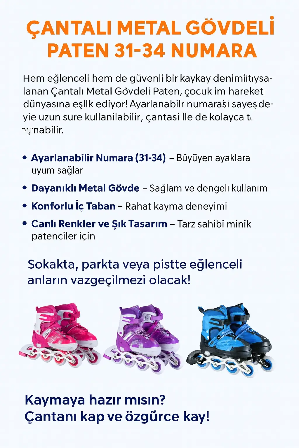 Çantalı Metal Gövdeli Paten 31-34 Numara