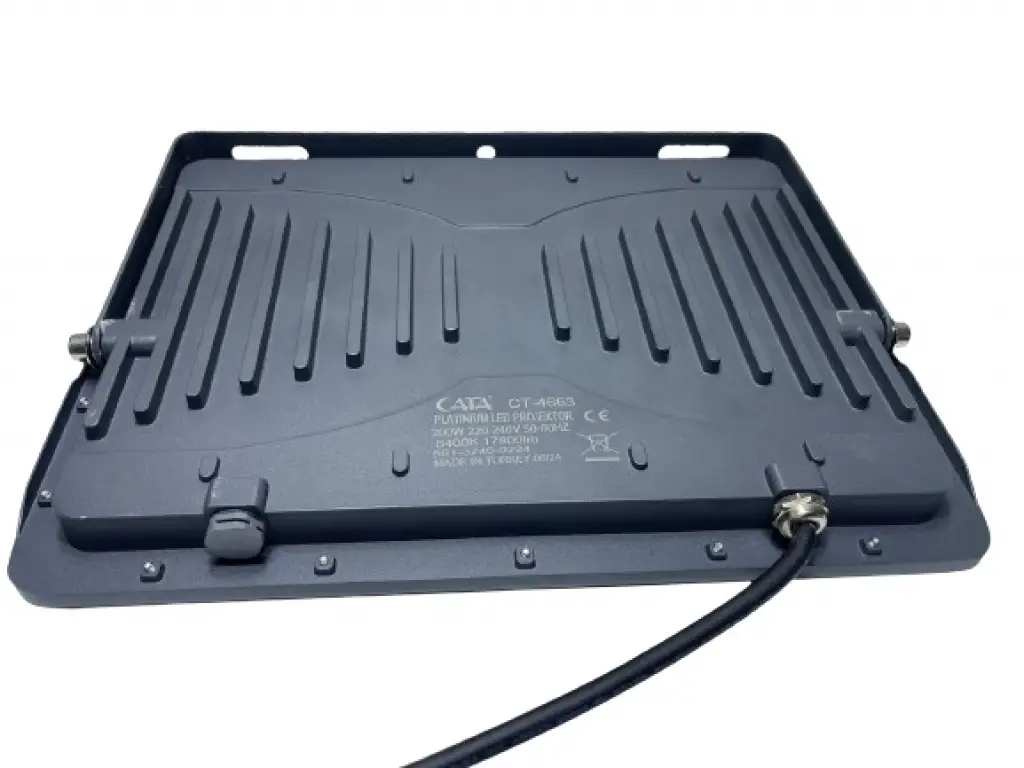CATA CT 4663, 200W gücünde, beyaz ışık (6400K) yayan slim LED projektör, 17.800 lümen parlaklık değeri ile geniş alanlarda mükemmel aydınlatma sağlar. IP66 sınıfı koruması sayesinde zorlu hava koşullarına dayanıklıdır ve dış mekan kullanımına uygundur.