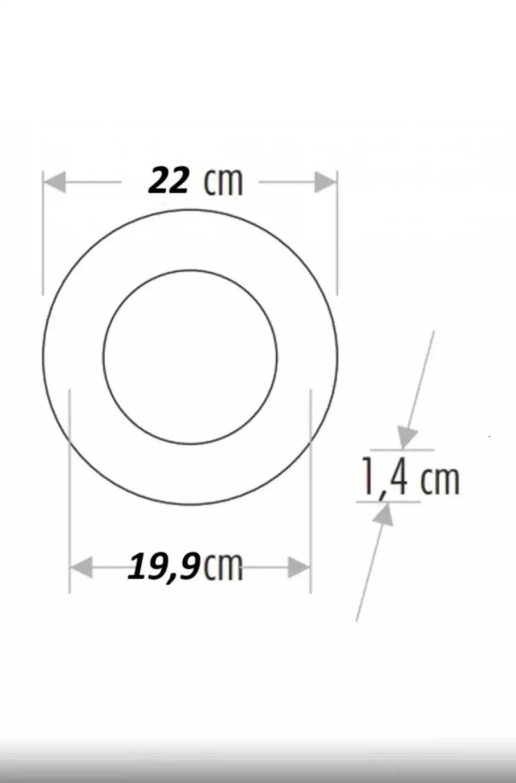 | Ürün Ebatları | Dış çapı : 22cm Derinlik çapı : 1,4cm İç delik çapı : 19,9cm |