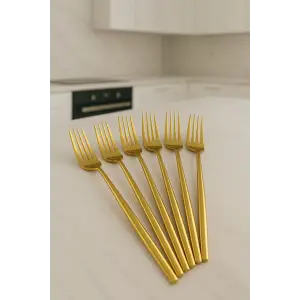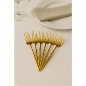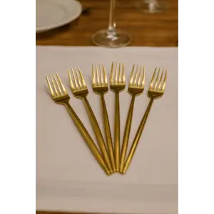 Lüks Gold Titanyum Kaplama 6'lı Yemek Çatalı Seti - Paslanmaz Çelik & Kararmaz Sofra Çatalı
