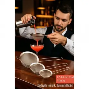 3’lü Bar Süzgeci Seti – 12-14-16 cm Çaplı Paslanmaz Çelik | Kokteyl ve Mutfak İçin