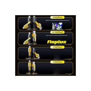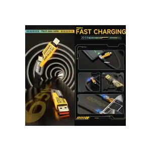 4in1 PD 65 Watt Type-C/27 Watt iPhone Halat Örgü Kırılmaz Uç 1MT Hızlı Şarj ve Data Kablosu fp98