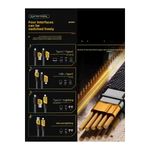 4in1 Type-c 65W to USB-A + Type-c to Lightning 27W Hızlı Şarj Kablosu SİYAH