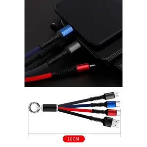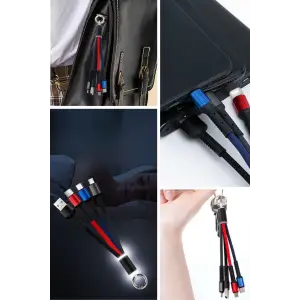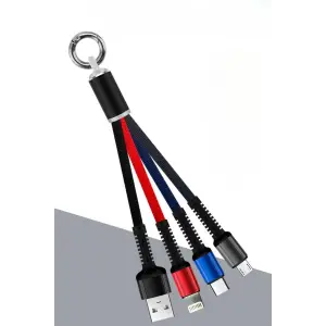 Işıklı Anahtarlık Model 3 İn 1 Usb Çıkışlı Mikro,type-c Ve İphone Uyumlu Şarj Kablosu
