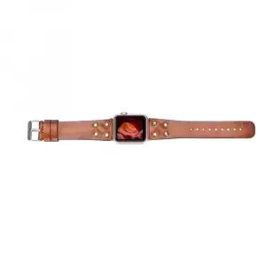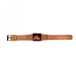 Apple Watch Uyumlu Deri Kordon 42-44-45mm G19 Taba