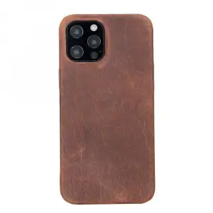 Apple iPhone 12 Pro Max Uyumlu Deri Arka Kapak ROCK G2 Kahve