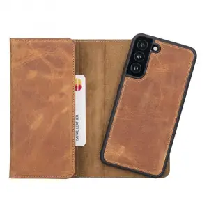Samsung Galaxy S22 Uyumlu Deri Cüzdanlı Kılıf MWWN RST2EF Taba