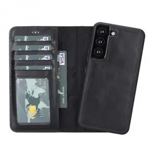 Samsung Galaxy S22 Uyumlu Deri Cüzdanlı Kılıf MWWN RST1 Siyah
