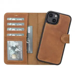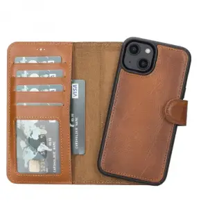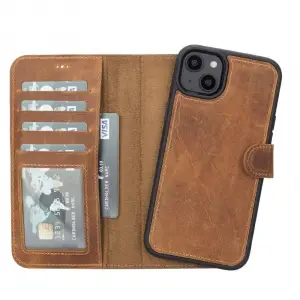 Apple iPhone 14 Uyumlu Deri Cüzdanlı Kılıf MWWN RST2EF Taba