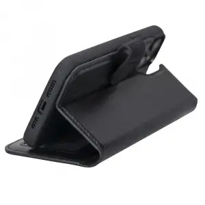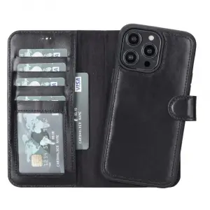 Apple iPhone 14 Pro Uyumlu Deri Cüzdanlı Kılıf MWWN RST1 Siyah