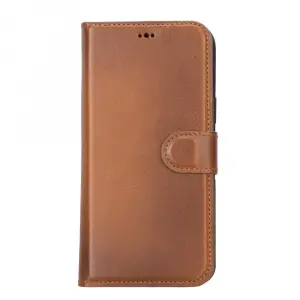 Apple iPhone 14 Plus Uyumlu Deri Cüzdanlı Kılıf MWWN G19 Taba