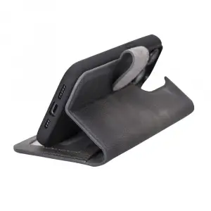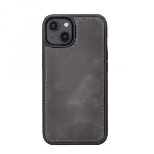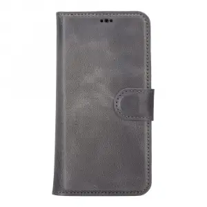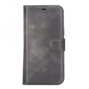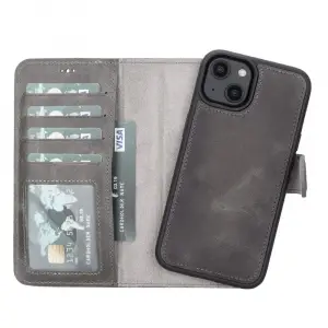 Apple iPhone 14 Uyumlu Deri Cüzdanlı Kılıf MWWN VS4EF Gri