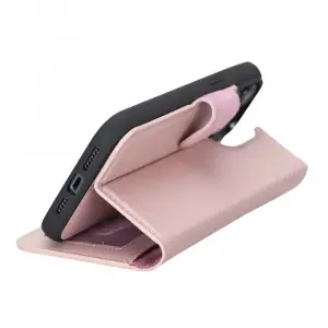 Apple iPhone 14 Plus Uyumlu Deri Cüzdanlı Kılıf MWWN NU2 Pembe