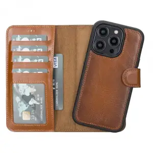Apple iPhone 14 Pro Uyumlu Deri Cüzdanlı Kılıf MWWN RST2EF Taba