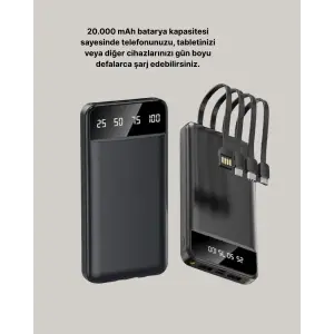 20.000 mAh 4 Çıkışlı LED Göstergeli Hızlı Şarj Powerbank