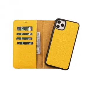 Apple iPhone 11 Pro Max Uyumlu Deri Cüzdanlı Kılıf FL12 Sarı