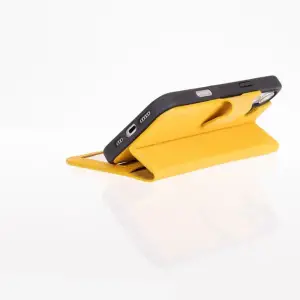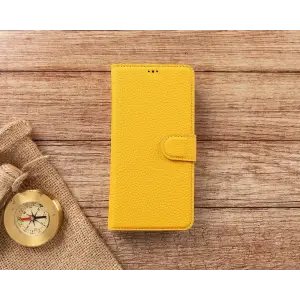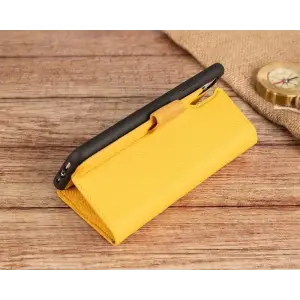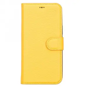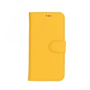 Apple iPhone 16 uyumlu, Hakiki Deri, El Yapımı, Cüzdanlı Kılıf, Limon Sarı