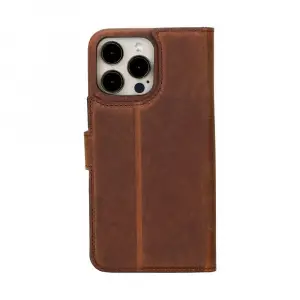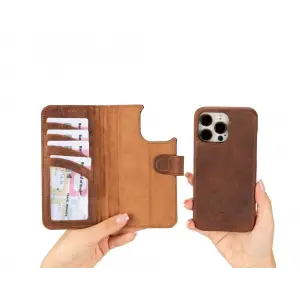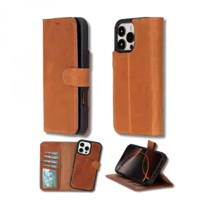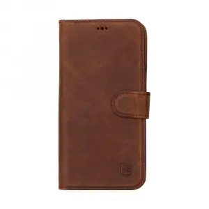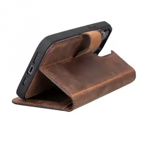 Apple iPhone 12 Pro Max Uyumlu Deri Cüzdanlı Kılıf Antik Kahve