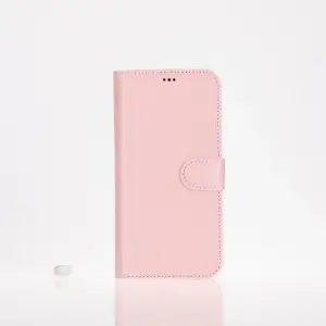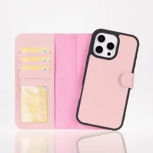 Apple iPhone 16 Pro uyumlu, Hakiki Deri, El Yapımı, Cüzdanlı Kılıf, Toz Pembe