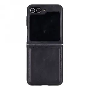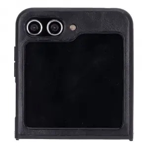 Samsung Galaxy Z Flip5 Uyumlu Deri Arka Kapak Parlak Siyah